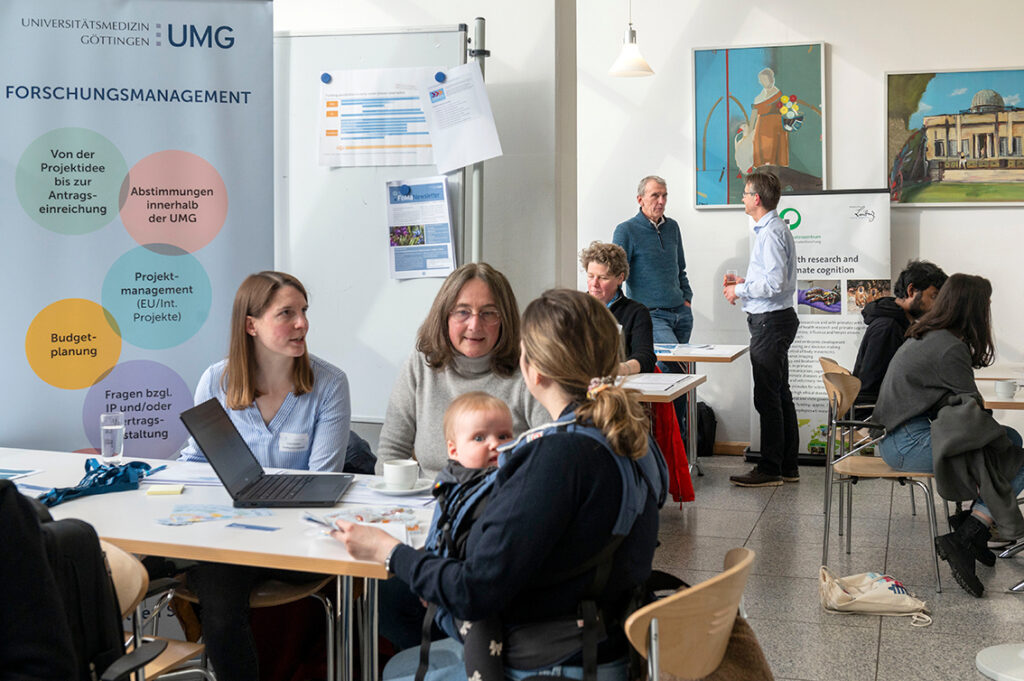 Darüber hinaus können sich die Messebesucher*innen an zahlreichen Ständen informieren. Hier beraten Expert*innen des gesamten Göttingen Campus zu Themen, die Menschen vor oder in der Postdoc-Phase bewegen – zum Beispiel Finanzierung und Stipendien, ein gutes Forschungsmanagement, der GAUSS-Karriereservice und Mentoring-Angebote. Auch mehrere Unternehmen sind mit dabei und informieren über ihre Tätigkeitsfelder und Karriereoptionen.